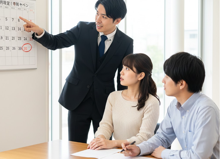一生に一度の買い物を、会社の締め日に合わせて決断させようとする姿勢そのものが異常なのです。