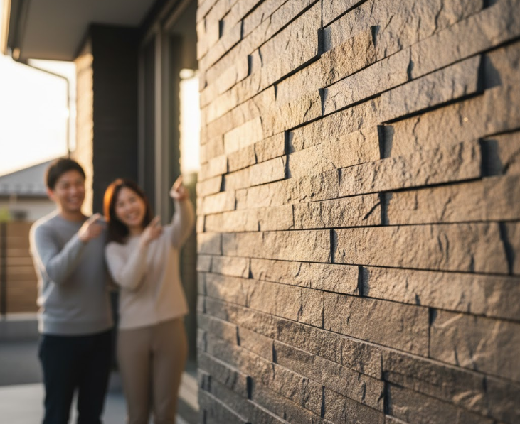 例えば、一部に天然石風のアクセントを入れたり、目地が目立たないシーリングレスの外壁材を選んだりするだけでも、一気に注文住宅らしい風格が出ます。