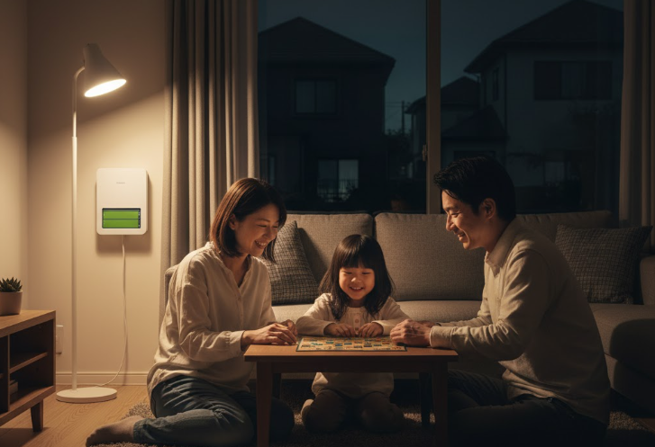- 停電時の絶大な安心感:デメリットの項でも触れましたが、蓄電池があれば停電時でも夜間に電気が使えます。冷蔵庫や照明、エアコン(一部)など、普段に近い生活を維持できるため、防災対策としての価値は非常に高いです。