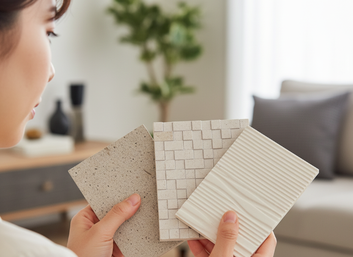 エコカラットには、石目調や木目調、シンプルなタイル調など、非常に多くのデザインバリエーションがあります。
