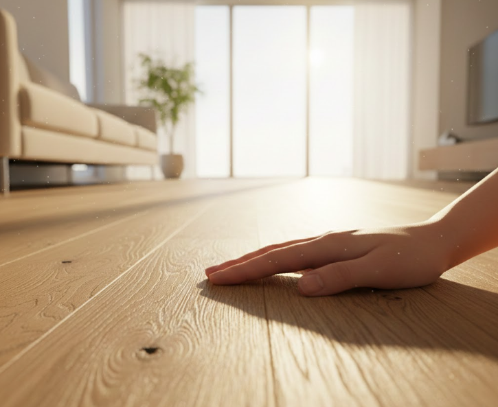 表面に天然木を使っているとはいえ、基材は合板ですから、無垢材のような深い温かみや、足裏に吸い付くような感覚とは明らかに異なります。