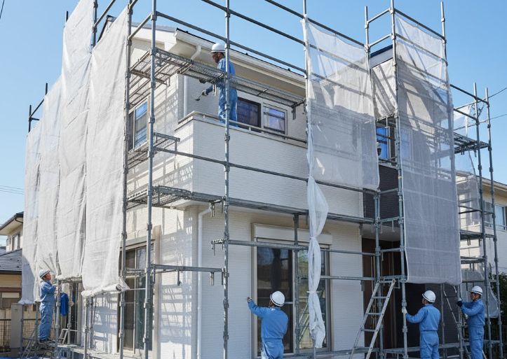 この足場は、外壁塗装だけでなく、同時に劣化が進んでいることが多いシーリングの打ち替えや、軒天の補修、雨樋の交換など、他の外装メンテナンスにも活用できます。