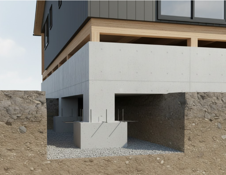 基礎の設計は、その土地の地盤調査結果に基づいて個別に行われ、最適な強度と安定性が確保されるようになっています。