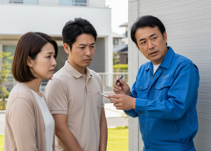 例えば、防蟻処理の効果が薄れているため再施工が必要だと判断された場合や、外壁のシーリング材が劣化しているため打ち替えが必要な場合などがこれに該当します。