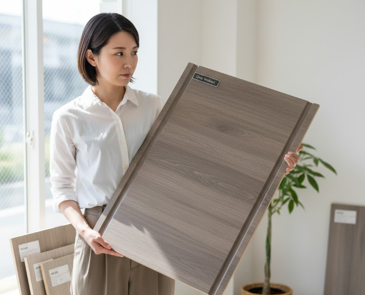モクリアの色を選ぶ際は、展示場に置かれている「大判のサンプル(できれば数枚並べたもの)」を確認してください。