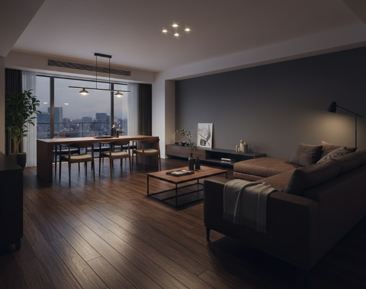 標準床も素晴らしい出来ですが、モクリアのV溝が生み出す陰影、さらさらとしたマットな肌触り、そして夜の照明に映えるデザイン性は、あなたの「おうち時間」を一段上のステージへと押し上げてくれます。