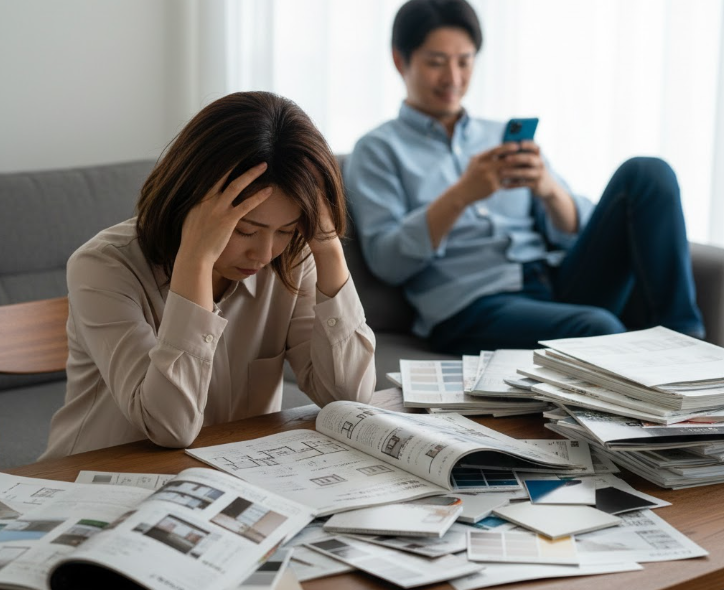 数百、数千という決断を一人で背負わされ、孤独に資料と戦う側の負担は、まさに「家づくりうつ」を引き起こしかねないほど甚大です。