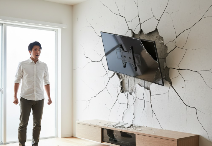 そのため、石膏ボードに直接テレビの取り付け金具を固定しようとしても、ネジやアンカーがボードを崩してしまい、テレビの重量を支えきれずに落下してしまう危険性が極めて高いのです。