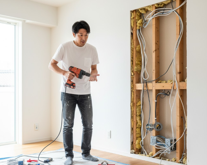 下地補強と並行して、絶対に見落としてはならないのが「コンセントと配線の計画」です。