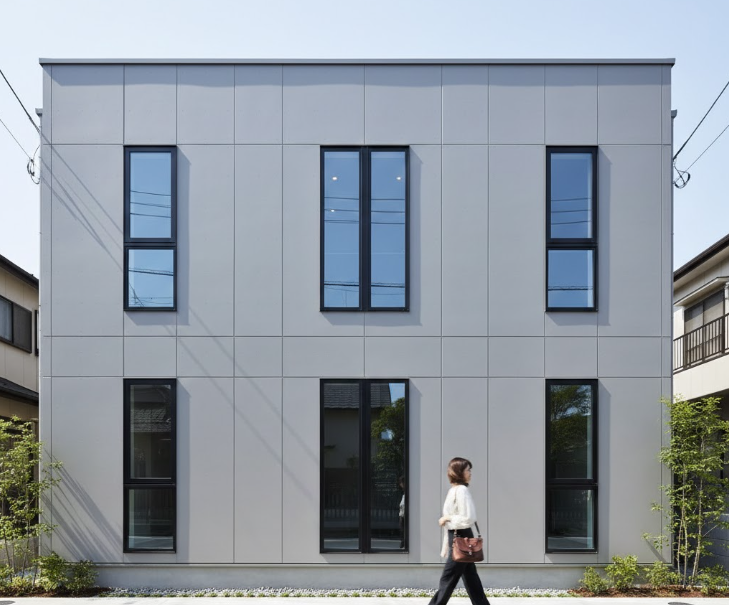 洗練された家は、窓のラインが揃っており、外から見て「どこに何があるか」というノイズが最小限に抑えられています。