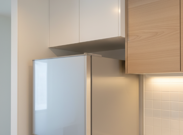 冷蔵庫のスペースは新築の計画では、本体サイズ+放熱スペース+ドア開閉スペースをトータルで考える視点が不可欠と言えるでしょう。