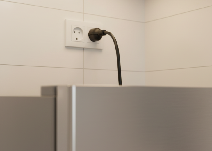 安全性とメンテナンス性を考慮し、コンセントは冷蔵庫の上部など、手が届きやすく、かつ目立ちにくい位置に設置するのが理想的です。