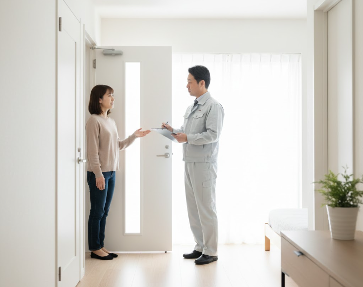 - 建具(ドア・窓)の動作: 開閉がスムーズか、鍵のかかり具合は正常かを確認します。
