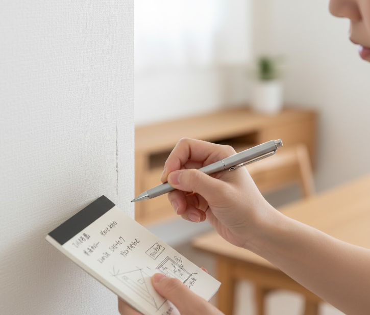 - 気になっている不具合箇所(クロスの隙間等)のメモ作成