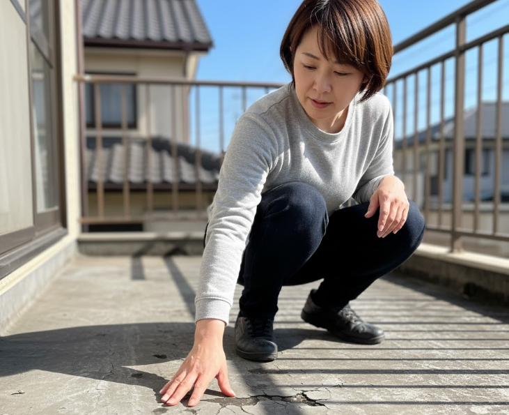 - 外まわり:外壁のひび割れ、目地(ガスケット)の劣化、基礎のクラック、屋根の状態