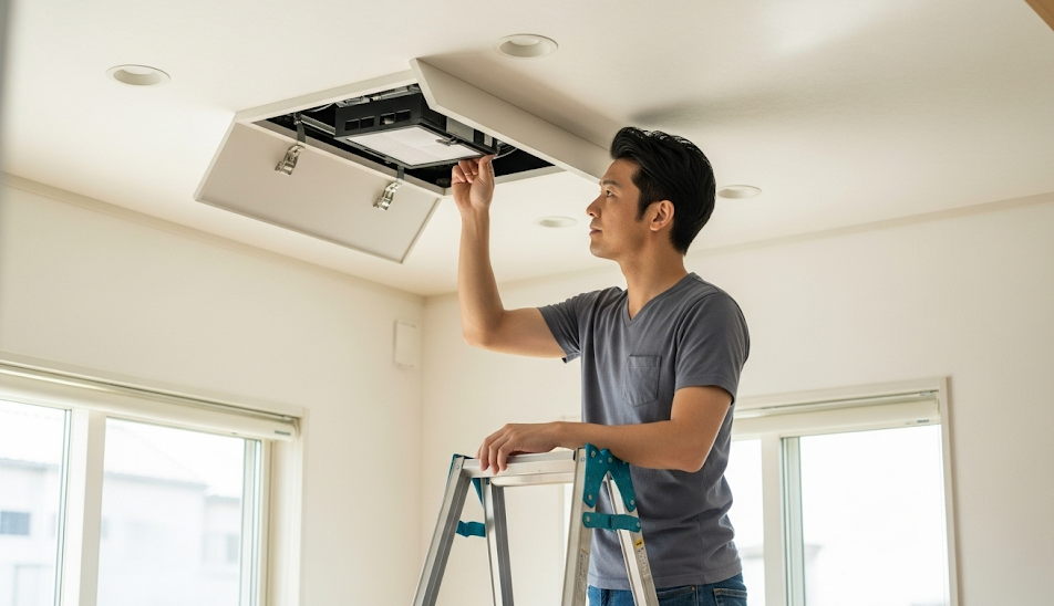 これらのフィルターは、天井に設置された点検口からアクセスするのが一般的です。