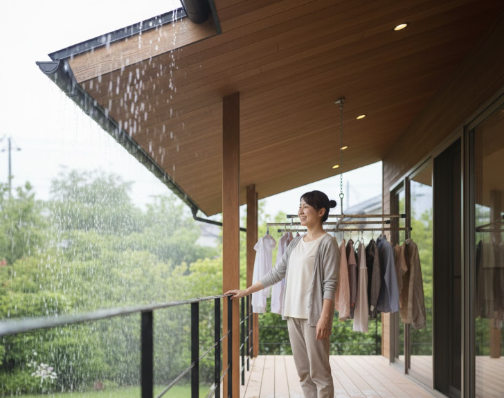 - 洗濯物が濡れにくいという家事楽メリットも大きい