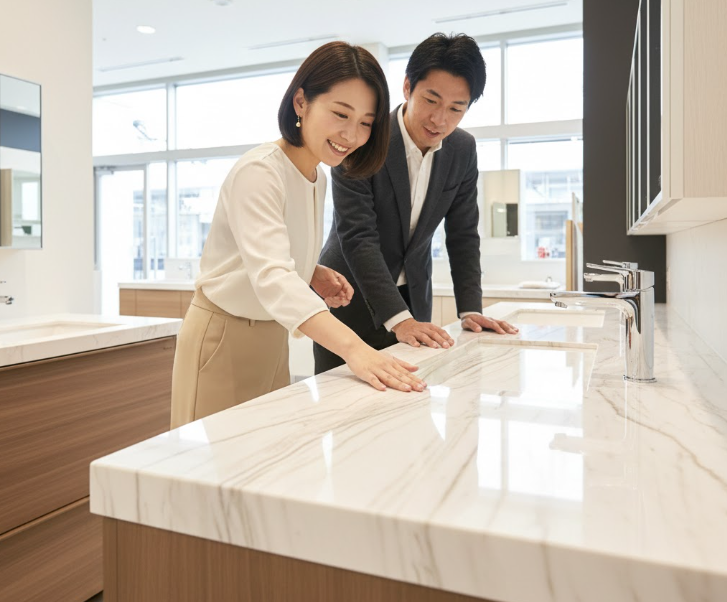 これ、実際にショールームで触ってみたんですが、冷んやりとして滑らかで、ずっと触っていたくなるような質感なんです。
