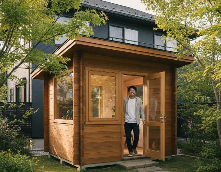 私が最もおすすめしたい解決策の一つが、母屋とはつなげずに庭に独立した「離れ(別棟)」を建てる方法です。